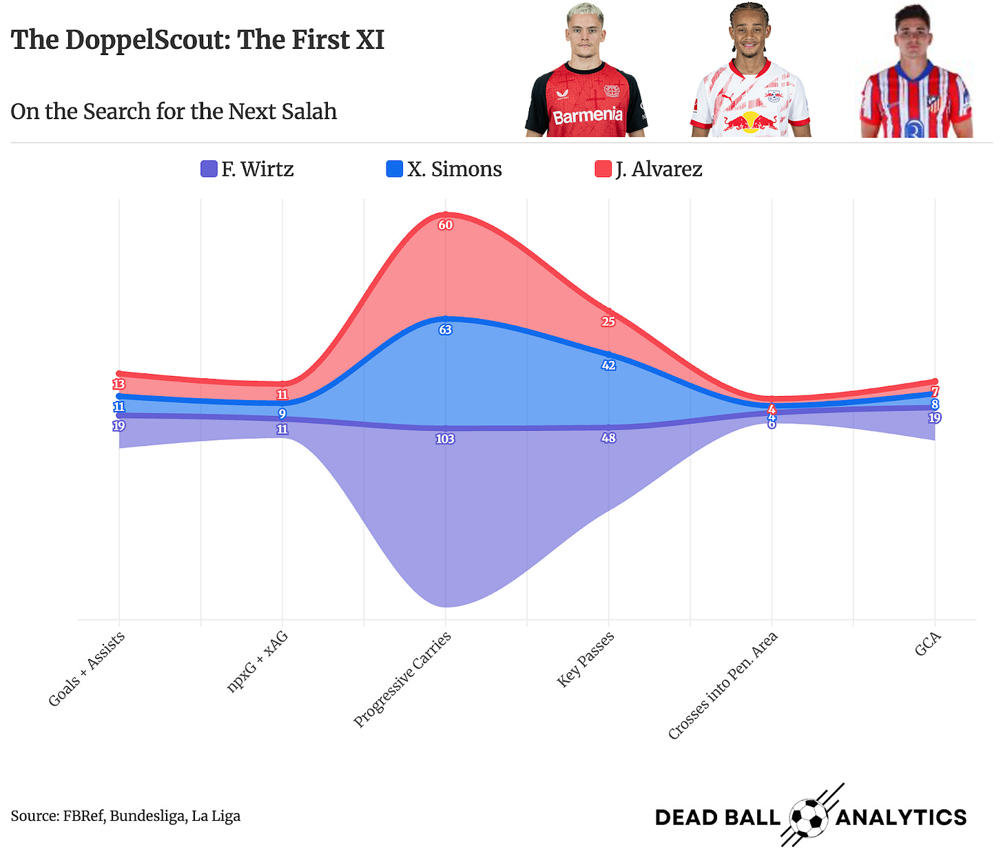 Using DoppelScout, we analyzed leagues, roles, and underlying metrics, focusing on fit rather than just output. We identified players capable of breaking systems, not just following them. Some offer short-term productivity, while others bring long-term potential. Each represents a different perspective on the post-Salah era.