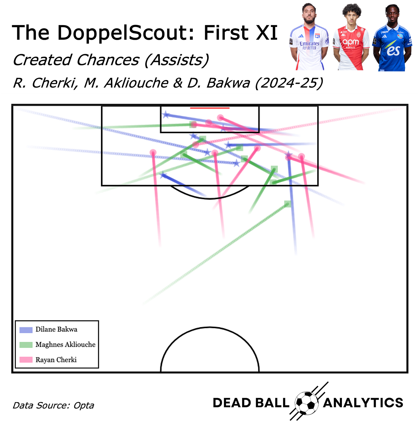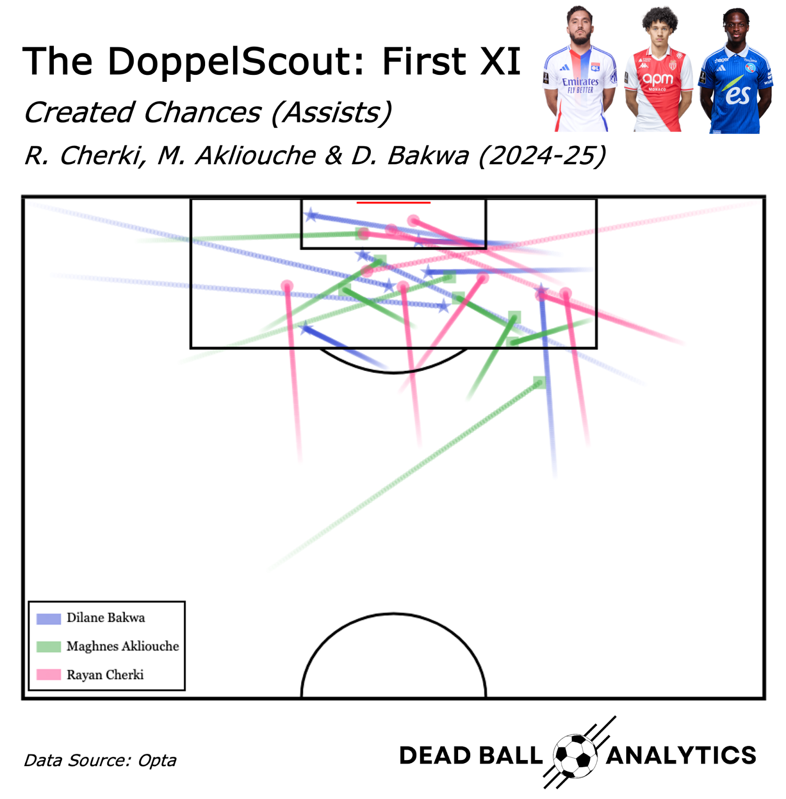 Figure 7: Created Assists by R. Cherki, M. Akliouche and D. Bakwa (2024-25)