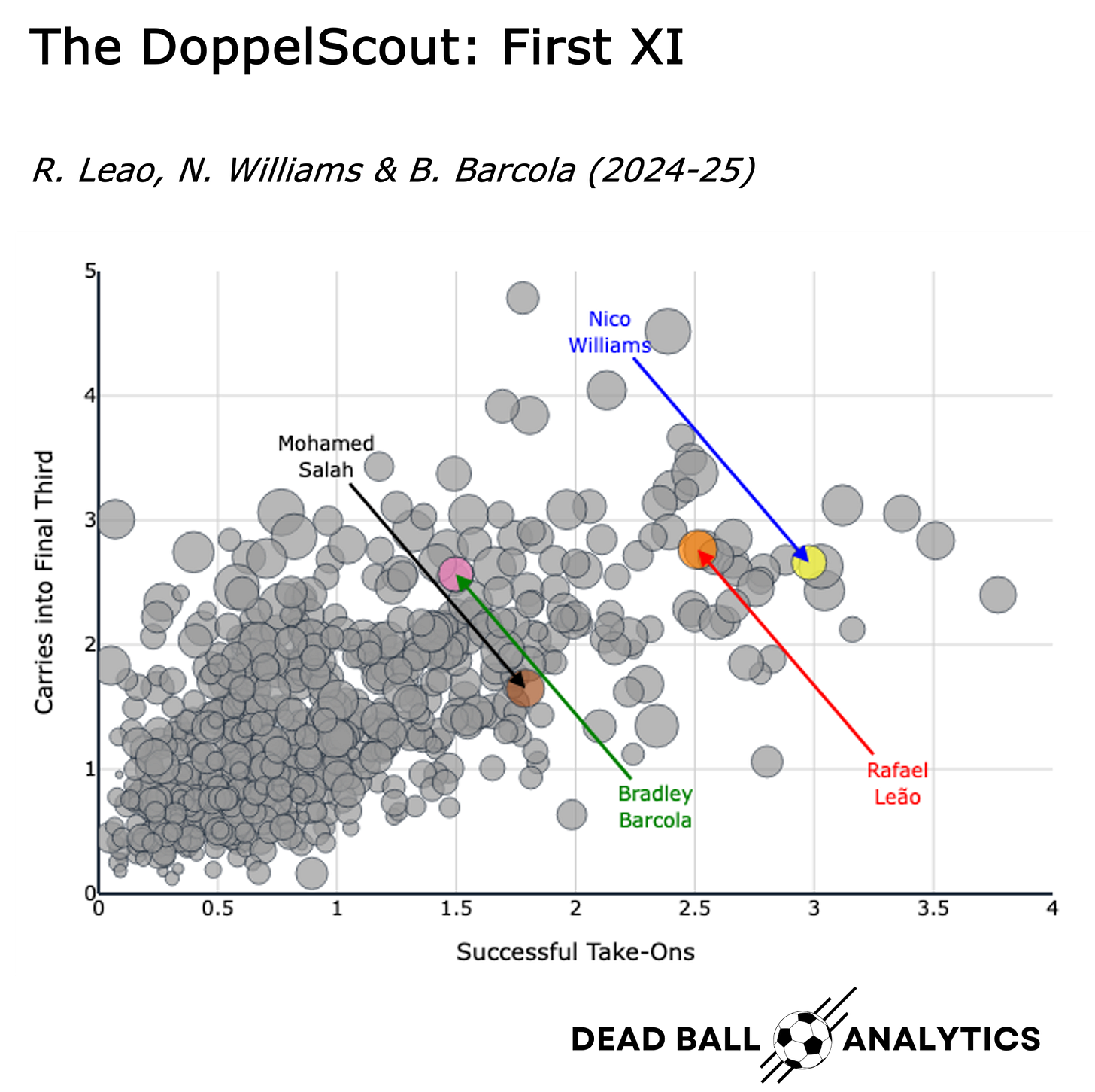 Figure 6: Bradley Barcola, Rafael Leao, Nico Williams comparison