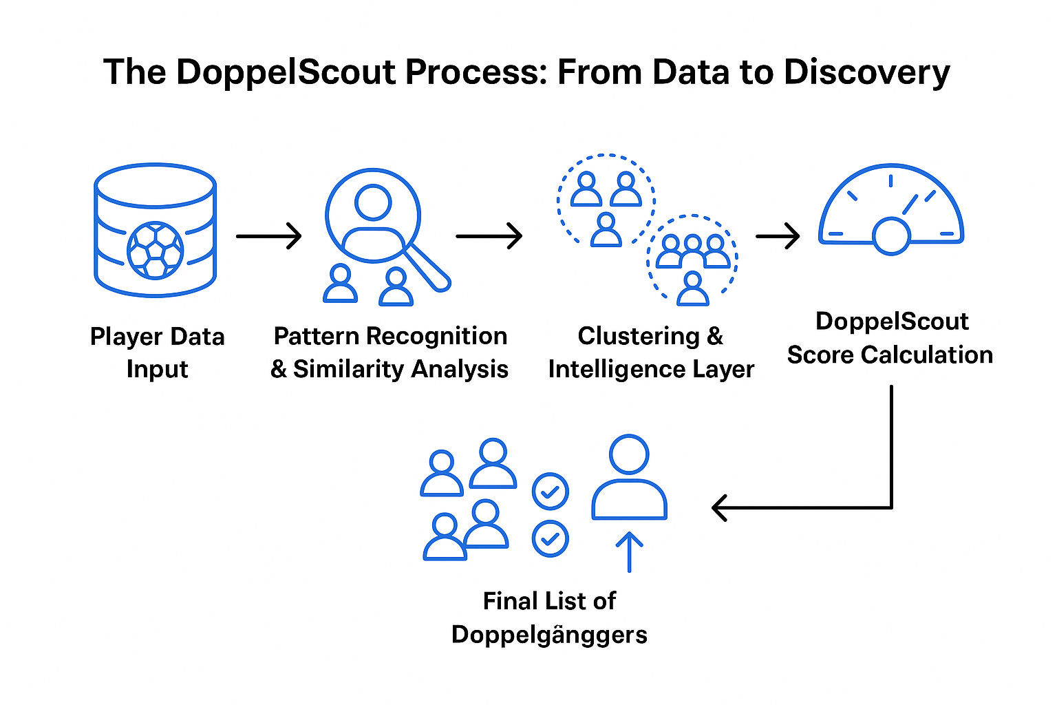 With Salah’s greatness in mind, we now shift gears into the world where stats meet scouting. Every football legend influences a player who mirrors their rhythm, instincts and impact on the pitch. DoppelScout is our cutting-edge scouting engine designed to find those elusive footballing Doppelgängers. It goes beyond the surface, digging past raw performance to unearth deeper layers of similarity through advanced metrics, AI-driven analysis, and intelligent player profiling.