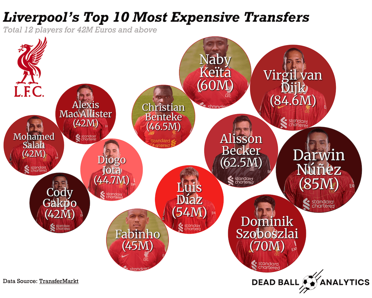 Figure 2: Liverpool’s Top 10 Most Expensive Transfers